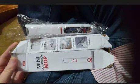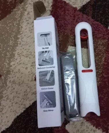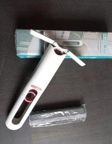 Mini portable mop with hand free squeeze design, ideal for quick and effortless cleaning. Suitable for cars, desks, windows, screens, and household surfaces with a durable sponge head.